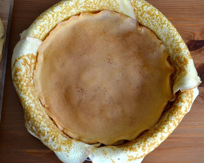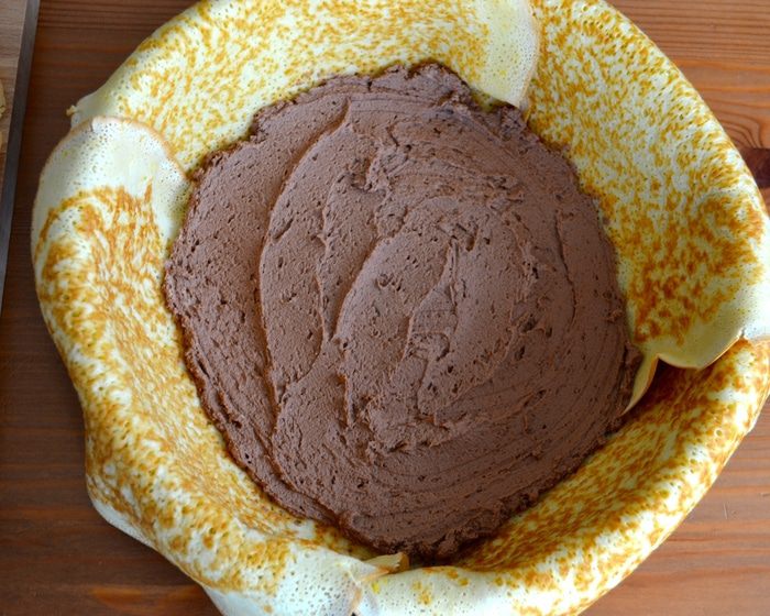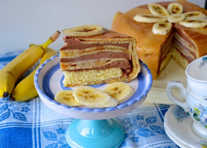 Этот вкуснейший блинный торт от итальянского кондитера Луки Монтерсино. Более того, у него есть два таких тортика; один сладкий и другой не сладкий! Я решила пока все-таки остановить свой выбор на сладком варианте! Так как в несладкий блинный торт входит не совсем еще распространенный для большинства продукт, как артишок! А в этом тортике такой простой набор продуктов, который найдется в доме у любой хозяйки...Да, и само сочетание шоколада с бананом очень мне по вкусу!