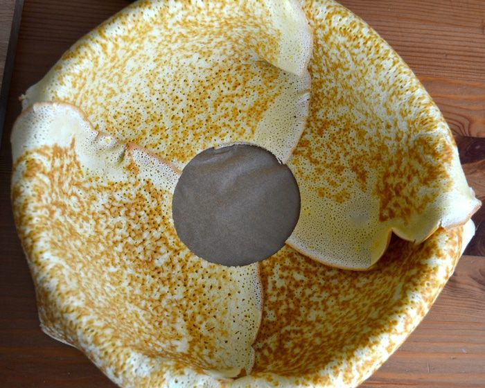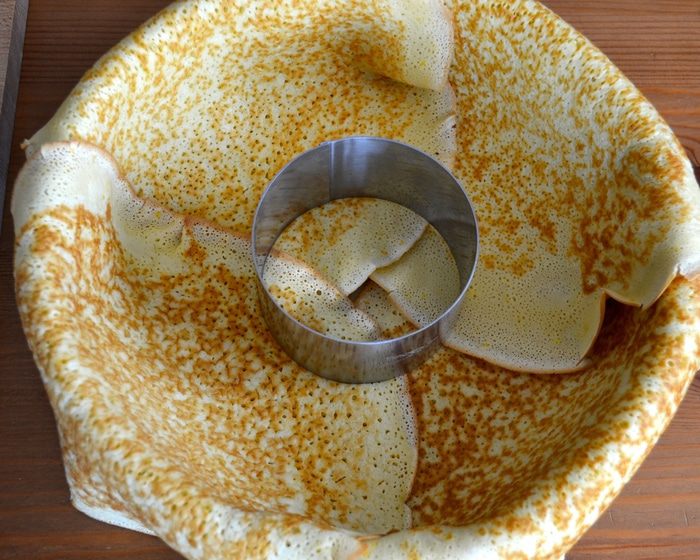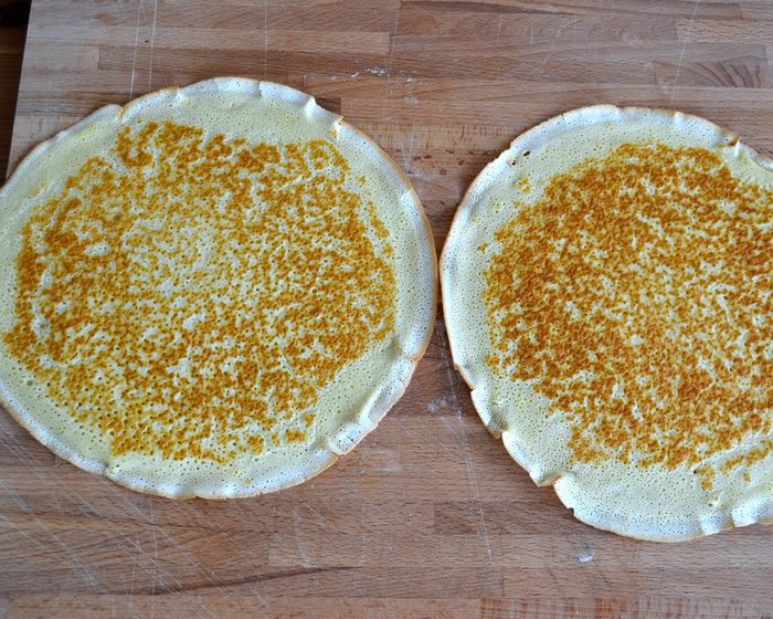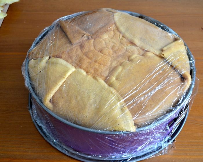 ВАЖНО: яйца будем использовать очень крупные, весом приблизительно 60-63 г (БЕЗ скорлупы)! У Л.Монтерсино в рецептах яйца обычно измеряются в граммах (так же как и белки и желтки), поэтому я уже просто указала количество используемых яиц в бисквите и в тесте для блинов... Да, и не только яйца, но и все жидкие ингредиенты тоже иногда измеряются в граммах, как здесь... Количество теста для бисквита я уменьшила, иначе бисквит получается слишком высоким и его в последствии приходится обрезать.