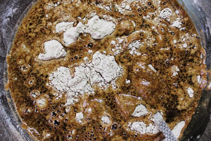Кофе при необходимости процедить, влить масло, уксус. Перемешать.