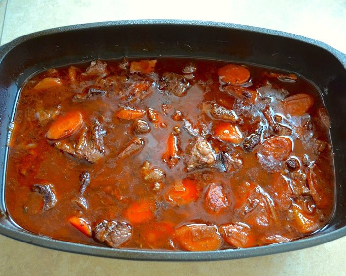 Накрываем кастрюлю крышкой и ставим в разогретую до 190°C духовку. Забываем о мясе на 2-2,5 часа!