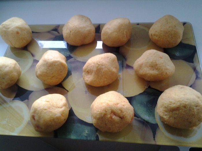 Добавить нутовую муку. Перемешать и скатать шарики. У меня получилось 11 штук.