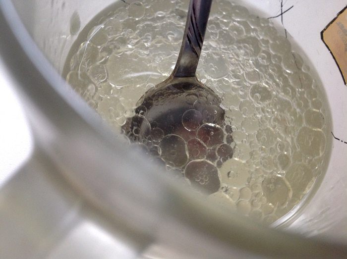 Растительное масло соединить с кипятком, быстро перемешать.
