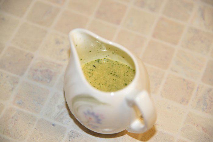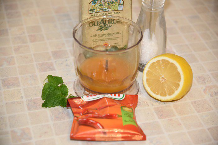 Приготовим продукты для заправки. Выжмем сок из апельсина и...