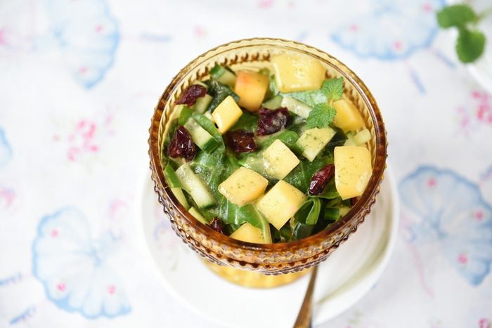Салат из шпината, манго и огурца с ароматной заправкой
