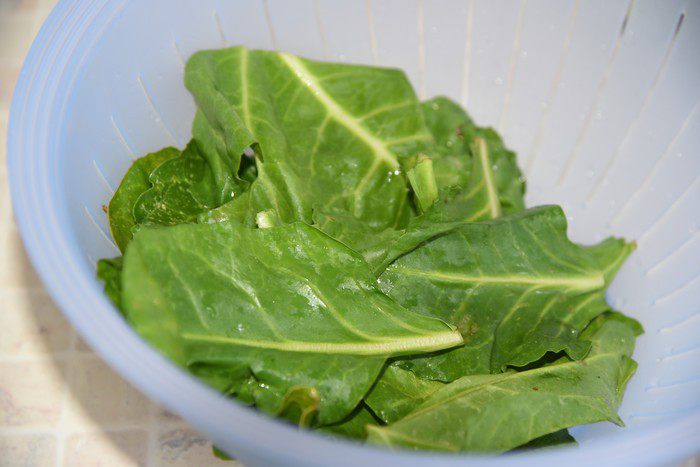 Шпинат промыть, перебрать, обсушить. Если крупные листья, как у меня, порвать помельче.