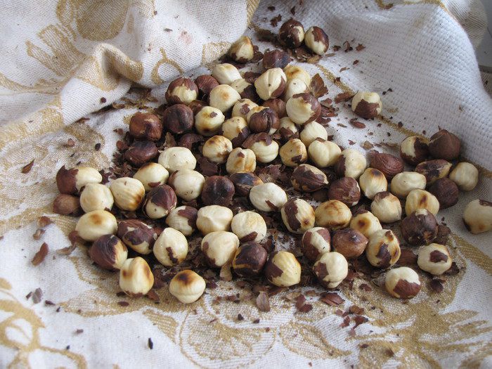 Затем выложить орехи в полотенце, закрыть и слегка потереть, чтобы отвалилась темная кожица.