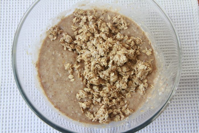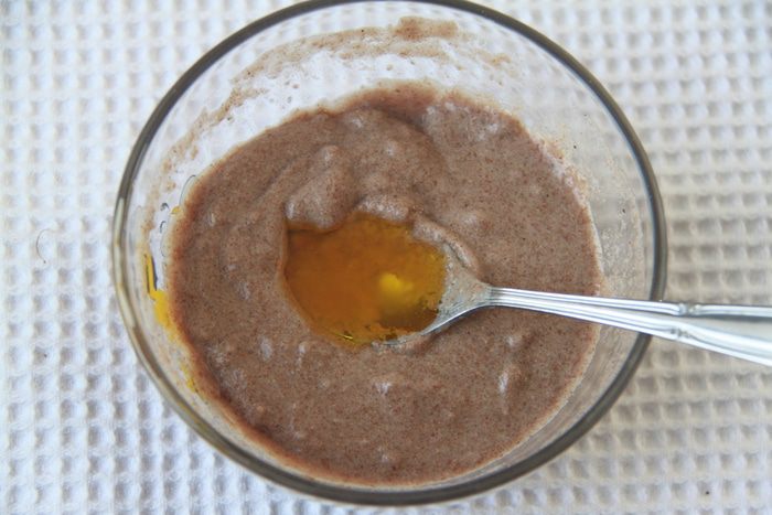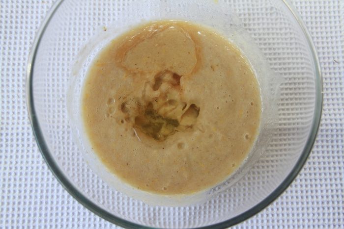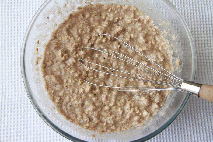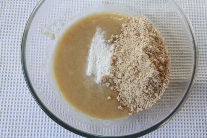 Добавить в тесто льняную смесь, растительное масло (в оригинальном рецепте миндальное), кленовый сироп (я заменила на имеющийся в наличии кукурузный), ванильный экстракт (у меня домашнего приготовления).