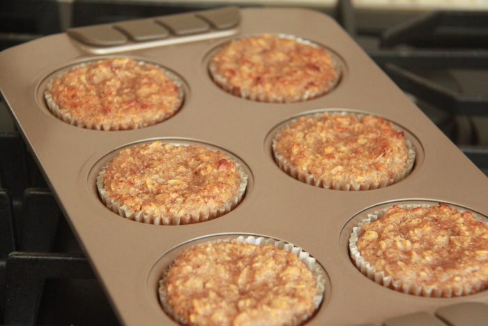 Духовку разогреть до 180-190°С (ориентируйтесь на свою духовку). Тесто разложить по формочкам.