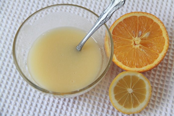 В сахарную пудру понемногу добавлять цитрусовый сок, размешивая и добиваясь нужной консистенции.