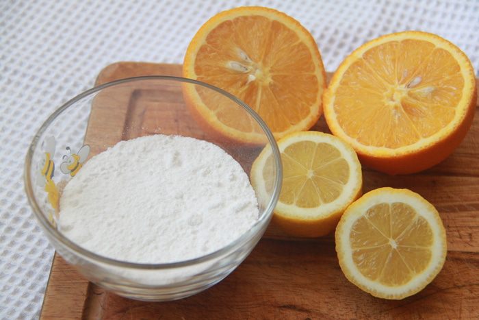 Сахар измельчить в кофемолке (или используйте готовую пудру). Из лимона и апельсина выжать сок.
