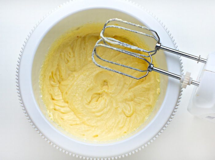 Сливочное масло взбить с сахаром до пышного состояния и полного растворения сахара.