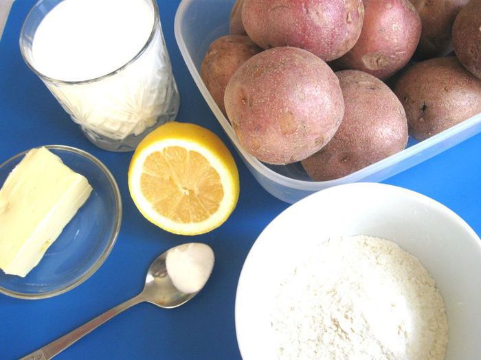 Для вас изменила дюймы, унции, чашки (можно и чашками, важна пропорция) на граммы, стаканы - что более привычно. Высота боксти - ¾ - 1 дюйм. Дюйм исторически - ширина большого пальца руки взрослого мужчины (и мала же была Дюймовочка…), конкретнее - английский дюйм = 2.54 см. Этой высоты или чуть меньше нашего картофельного блинчика и будем придерживаться.