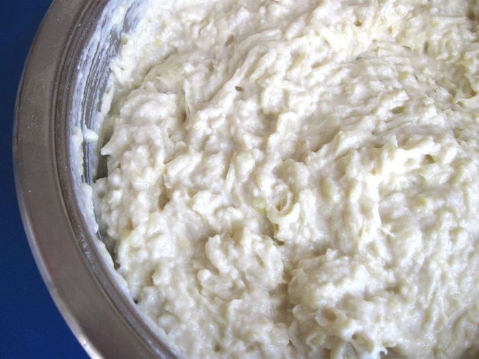 Еще один важный компонент: пахта (buttermilk англ.,- пахта). Кефир тоже встречается, но традиционной является пахта, она используется и для ирландского хлеба на соде, и для выпечки кексов. В результате реакции кислоты с разрыхлителем и питьевой содой выделяется двуокись углерода и хлеб поднимается.