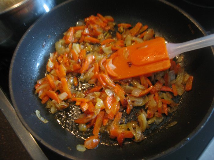 Добавить морковь, накрыть крышкой и тушить до готовности.