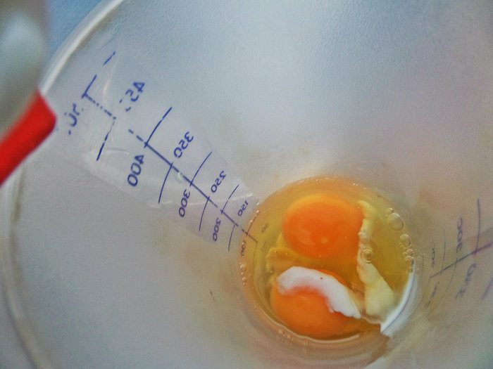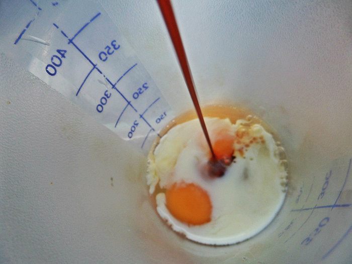 Вбиваем в шейкер яйца с молоком.