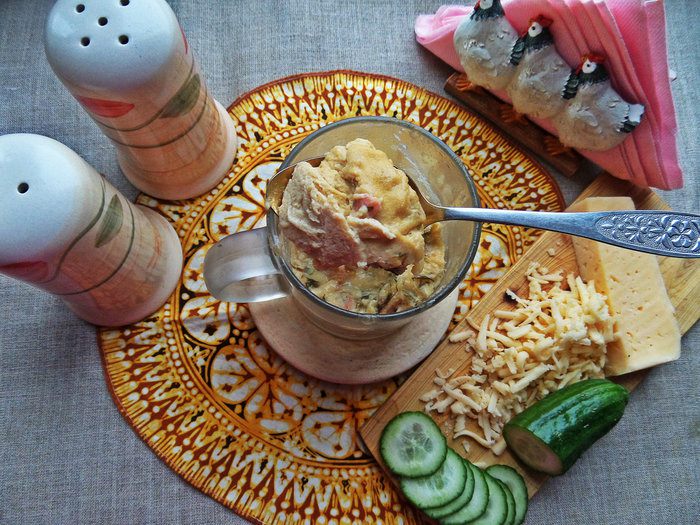 Рецепту научилась у доктора С. Агапкина (кто не знает,напишу передачу в личке). Прямо тут же пошла и повторила, вернее даже не пошла, а просто протянула руку в микроволновку и потом достала готовый омлет в кружке! У Сергея был омлет с брынзой и зеленью.