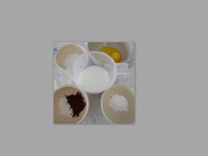 Начнём процесс с приготовления крема. Нам понадобится молоко, желтки, мука, крахмал, сахар, какао. В чашку насыпать крахмал и муку. Добавить в сухую смесь желтки и перемешать венчиком до однородности. Влить третью часть горячего молока с растворённым в нём какао, в крахмально-яичную смесь, интенсивно помешивая венчиком. Затем, при непрерывном помешивании, влить оставшееся молоко, поставить на слабый огонь, постоянно помешивая деревянной лопаткой или венчиком. В процессе нагревания крем загустеет.
