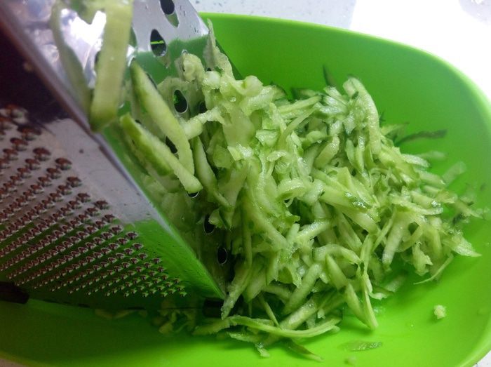 Огурцы натереть на крупной терке.