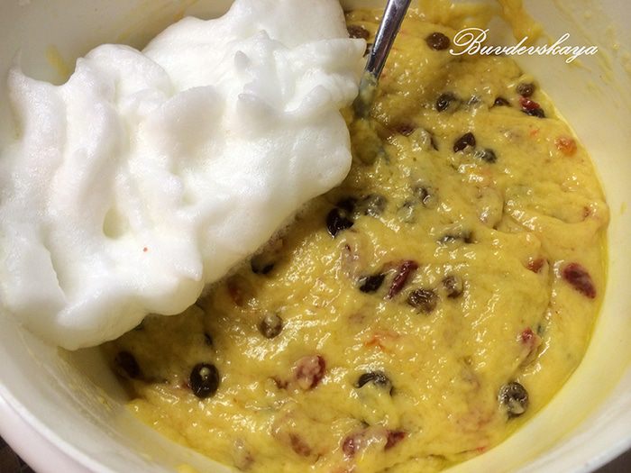 Белки взбиваем и аккуратно вмешиваем в тесто.