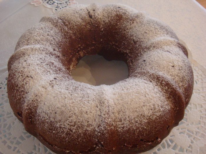 Готовый кекс присыпать сахарной пудрой или можно полить растопленным шоколадом. Приятного аппетита!