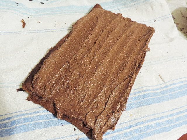 Рулет осторожно разворачиваем, намазываем кремом и снова сворачиваем.