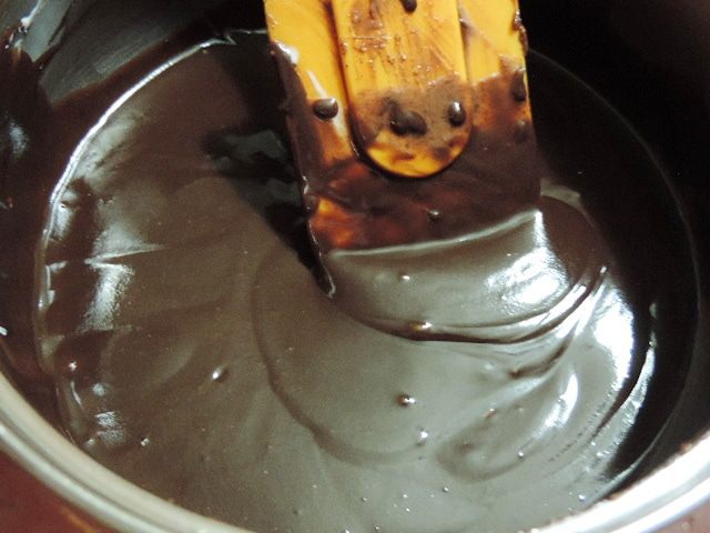 Для глазури ваш любимый шоколад растопите со сметаной (сливками) на маленьком огне до получения однородной массы.