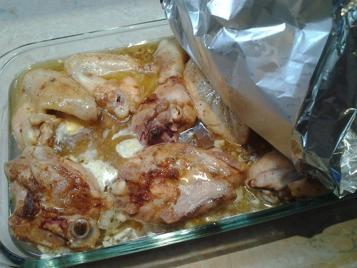Через 15 минут можно открыть фольгу,чтобы курочка подрумянилась.Но я убирала фольгу за 5 минут до окончания и включила гриль.