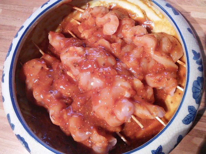 Замариновать на несколько часов при комнатной температуре. Если соуса маловато, лучше сделать ещё. Лишний соус после маринования нужно прокипятить и можно подать дополнительно на стол.