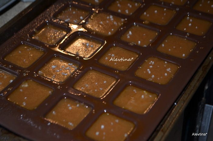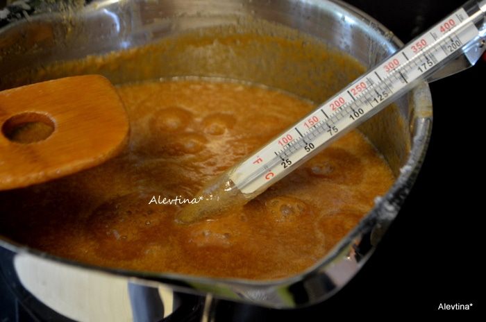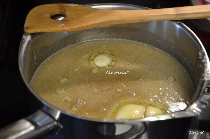 Смазать 2 прямоугольные формы маслом. Отмерить ваниль и отставить в сторону. В кастрюле с толстым дном (это важно, чтобы ваша смесь не пригорела) растопить сливочное масло кусочками, добавить сливки, кукурузный сироп, сахар, соль. Готовить все на средне-низком огне, помешивая. У меня электроплита с измерениями на ручке от 1 до 10, я ставила между двойкой и тройкой. Варить, постоянно помешивая в течение 2-х часов.