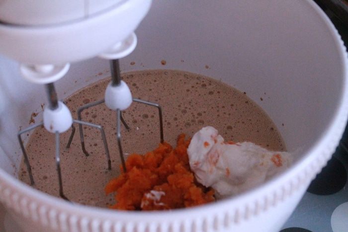Добавить сметану, пюре морковное, масло. Взбить до однородности несколько секунд.