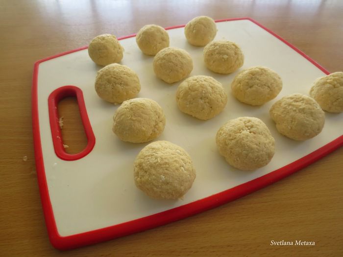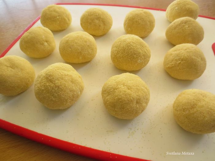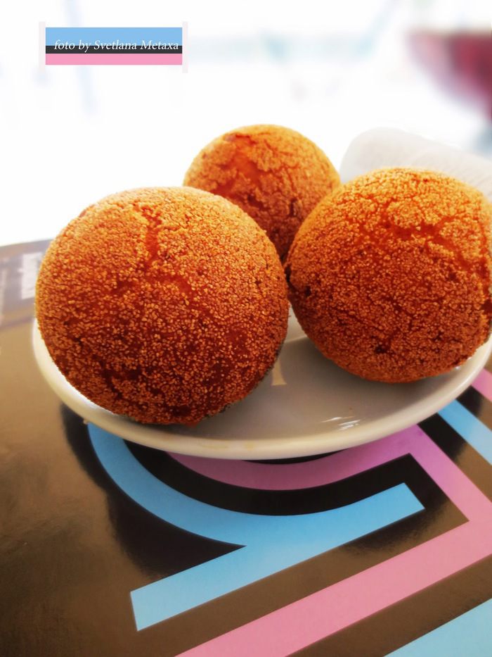 Жарить в хорошо разогретом фритюре (в глубокой сковороде, в большом количестве растительного масла) до появления золотистой корочки и потом еще примерно 5 минут. Разрезать один "апельсин", если он внутри прожарился, то вынуть шумовкой остальные, если нет, то еще чуть-чуть обжарить.