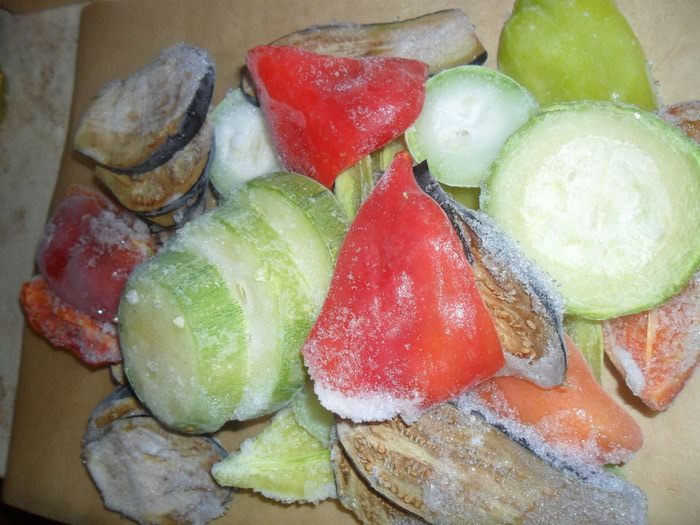 Включаем духовку на режим гриль. Овощи, не размораживая, кладем на противень. Слегка поливаем растительным маслом. Как духовка нагреется, отправляем туда наши овощи. Через 5 минут их нужно вилкой отсоединить один от другого.