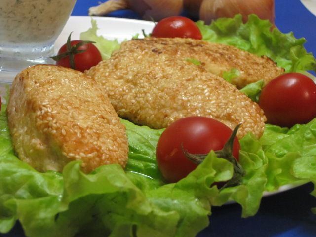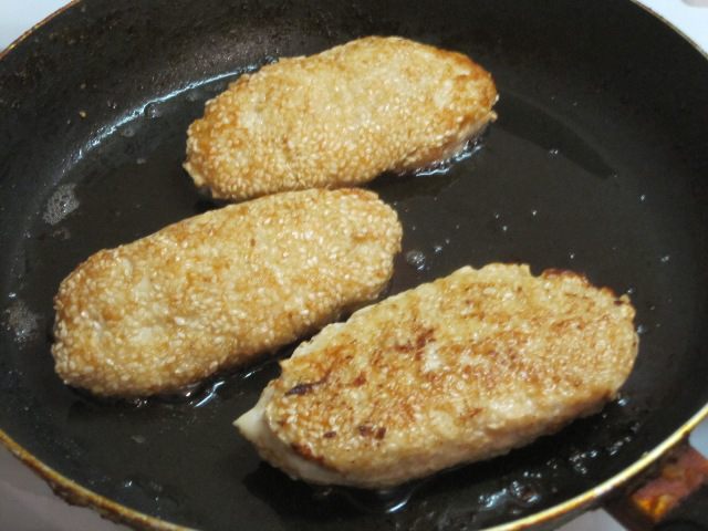 Обвалять котлеты в кунжуте.