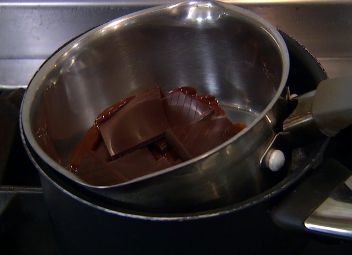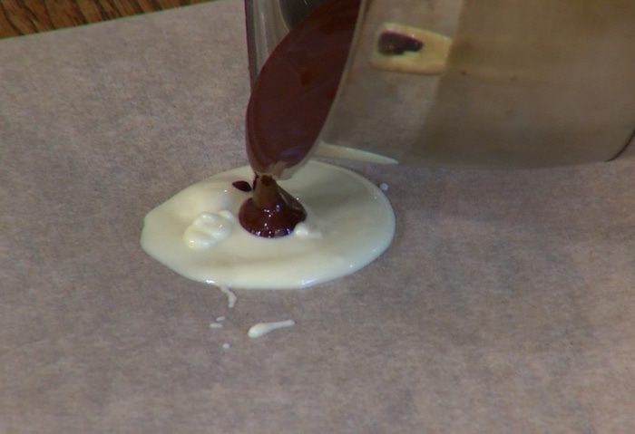 Белый и черный шоколад по отдельности растопить на водяной бане.