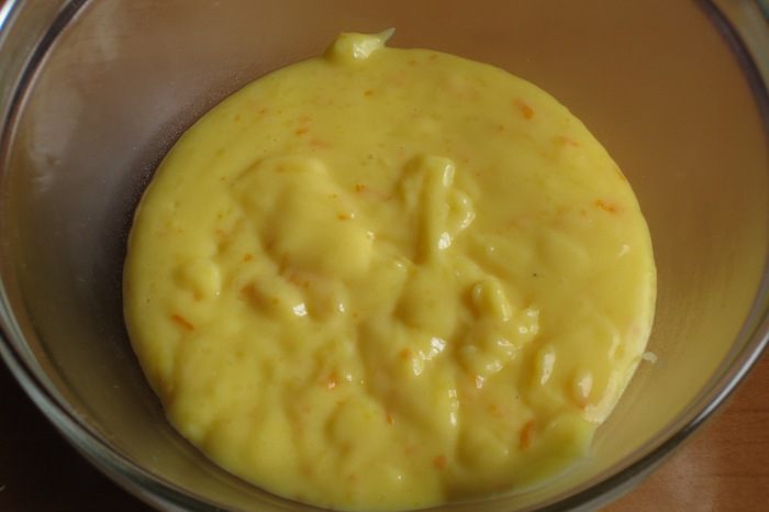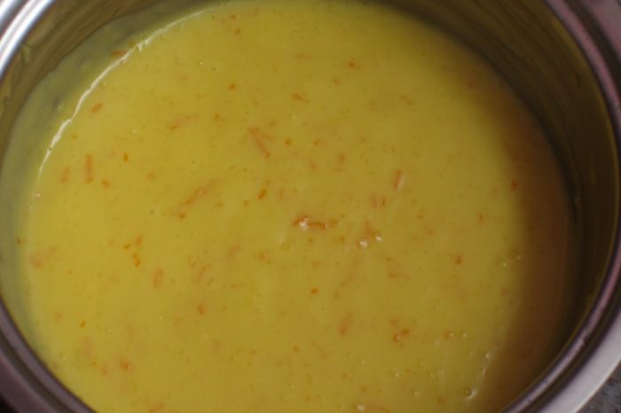 Начинка: в молоко добавить цедру апельсина и довести до кипения.