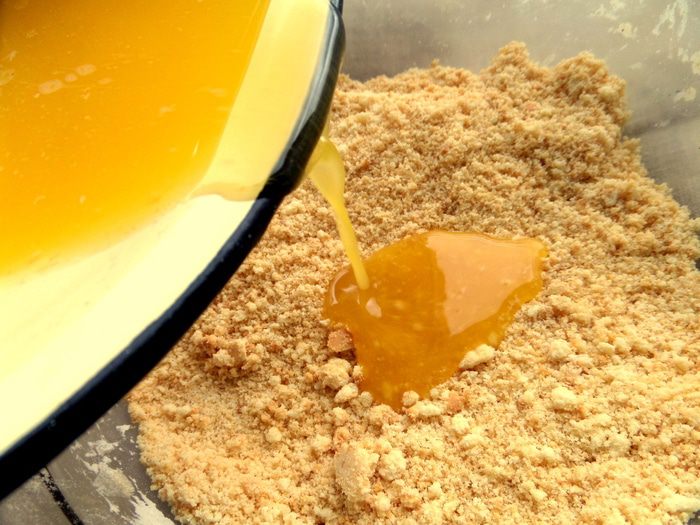 Сливочное масло растопить и влить в крошку.