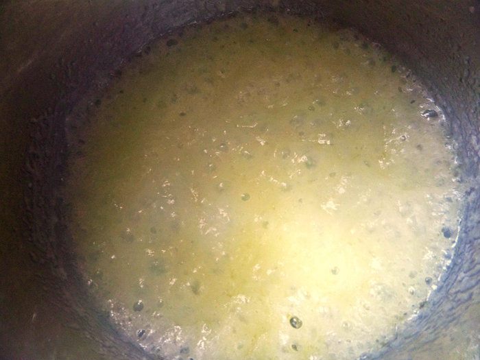Масса должна увариться и поменять цвет. Крем напоминает по вкусу варёную сгущёнку.