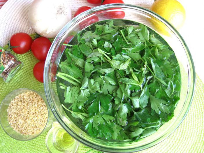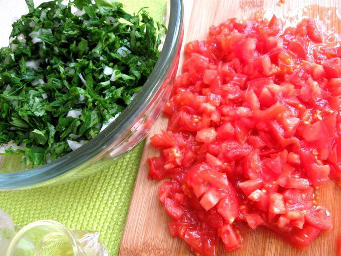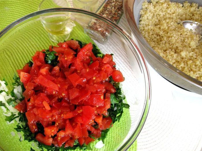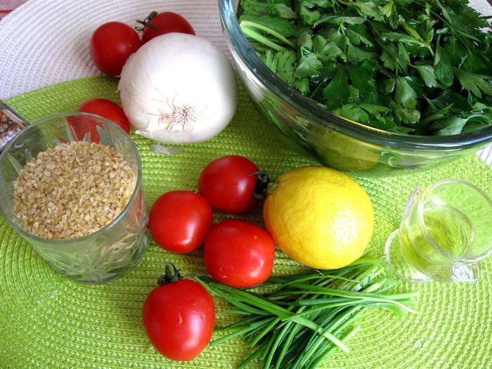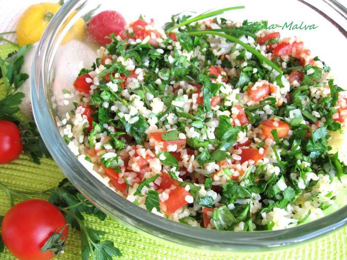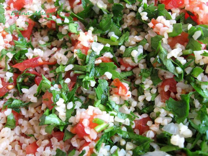 В этом очень популярном даже за пределами Ливана салате ароматное и интересное сочетание овощей, крупы, зелени и специй. Он удивительно гармоничен; может быть, поэтому его называют «феей салатов» и часто подают на общую семейную воскресную трапезу.