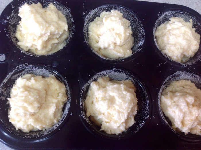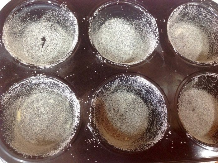 Формы для маффинов заранее смазать сливочным маслом и слегка присыпать манной крупой.