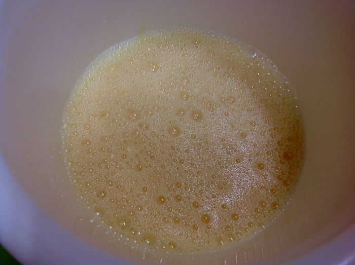 В отдельной посуде слегка взбивать яйца, добавив молоко.