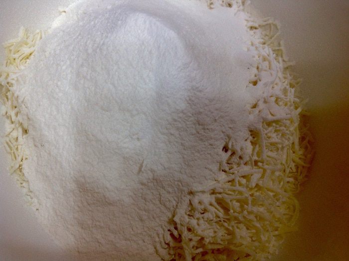 Сыр чеддер натереть на мелкой терке.