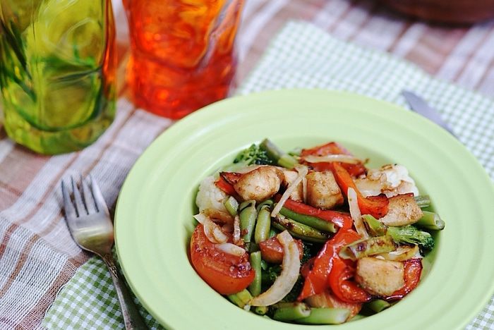 Куриное филе обмыть и обсушить бумажным полотенцем, нарезать на среднего размера кубики.
