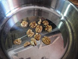 2. Грецкие орехи слегка подсушите на сковороде и измельчите ножом.