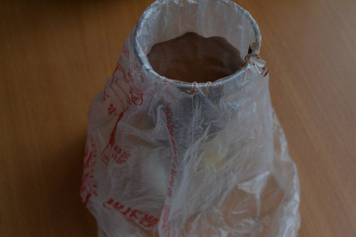 Я перелила шоколадное тесто в кондитерский мешок для удобства)
