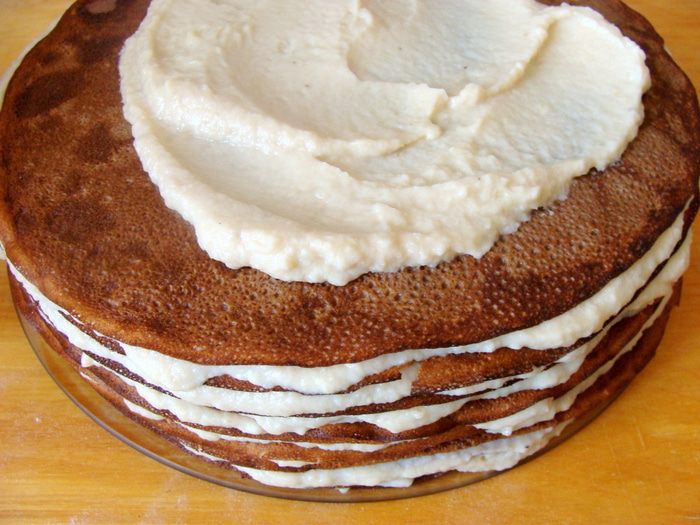На медленном огне, постоянно помешивая и не доводя до кипения крем нужно довести до состояния загустения, потом остудить, можно не до конца.