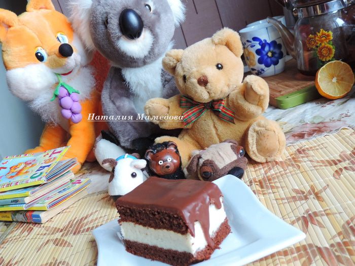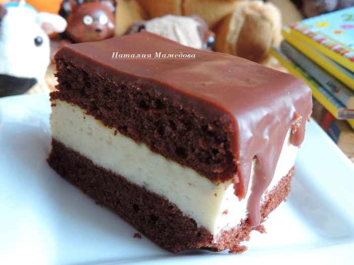 Нежное, шоколадное, тающее во рту, с бесподобной сливочной прослойкой-суфле и глазурью на молочном шоколаде.