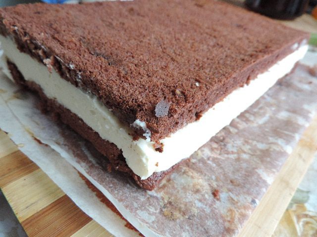 В оригинале пирожное называлось "Киндер милк слайс". С претензией на то, что это домашний вариант популярного детского пирожного. Не могу сказать, насколько он похож на оригинал (никогда даже в голову не приходило покупать его детям