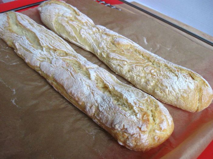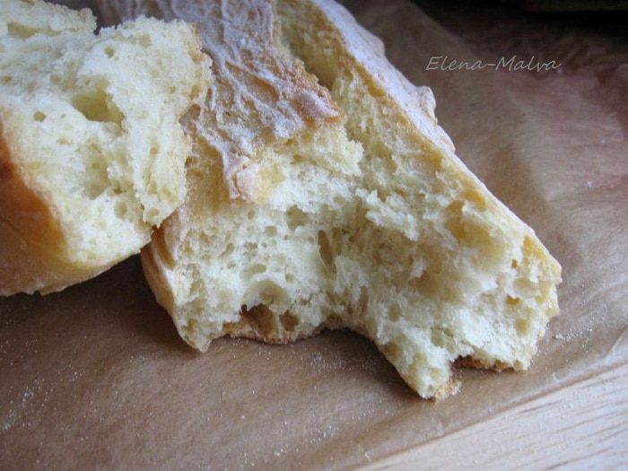А это хлеб, который я пекла накануне. Дрожжей сухих взяла 5г, муки, соли и воды столько же, сколько в основном варианте. Расстаивалось тесто 2 часа. Температура воды, которую я добавляла к муке, была 18С. Хлеб тоже вкусный, но корочка менее плотная, так что я бы посоветовала остановиться на варианте, который я привела полностью:хлеб более насыщенный, лаконичный.