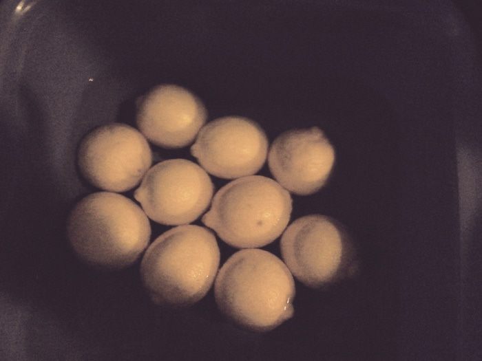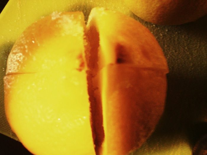 Слить воду, надрезать каждый лимон крестиком и положить в каждый лимон 2 ч.л. соли.