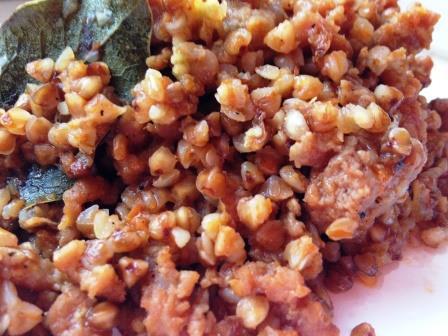 В готовую гречку добавить мелко нарезанный чеснок (или выдавить из чеснокодавки), перемешать и подавать!
